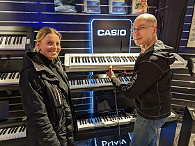 Vidar Kolberg (t. h.) demonstrerer et Casio CDP-S110 digitalpiano for Sara Ulset. Pris inkludert pedal og notestativ: 4.700,- Foto: Stian Sønsteng