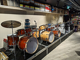 Trommesett fra blant annet Gretsch. Foto: Stian Sønsteng
