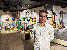 Julian Falck i avdelingen for elgitarer. Foto: Stian Sønsteng