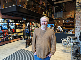 Butikksjef Jorge Falck ved inngangen til 4Sound Trondheim. Foto: Stian Sønsteng