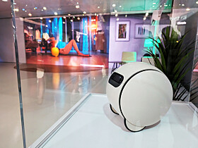 Hjemmeassistenten Ballie kom i 2020, med projektor, og årets nye modell har blant annet fått kunstig intelligens. Foto: Stian Sønsteng