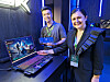 Thoai Au (t. v.) og Ekaterina Bakhbava med Acer Project DualPlay, der berøringsplaten er en en avtagbar, trådløs kontroller. Foto: Stian Sønsteng