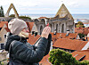 Siiri Kirikal på fotosafari i Visby. I bakgrunnen ruinene etter middelalderkirken S:t Lars. Foto: Stian Sønsteng