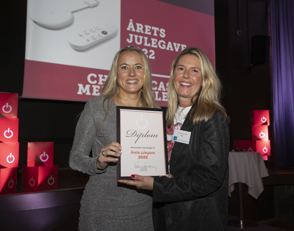 Lina Kjällström (t. v.) og Christina Hovde-Olsen i Google-selskapet Fitbit mottok prisen for «Årets julegave 2022». Foto: Tore Skaar
