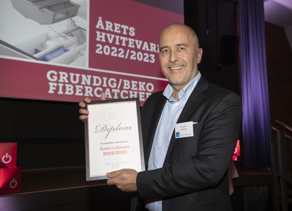 Ståle Bråthen i Grundig mottok prisen for «Årets hvitevare 2022/2023». Foto: Tore Skaar