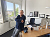Han ønsker oss velkommen i administrasjonsbygget i Eime, som