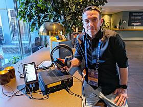 Ståle Andersen i Sivilingeniør Njål Hansson AS med hodetelefoner fra Audeze og hodetelefonforsterker fra FiiO. Foto: Stian Sønsteng