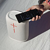 – Den veier mindre enn to kilo, og har en kjekk bærestropp. Denne legger seg med en magnet pent inntil høyttaleren når den ikke er i bruk, og for android-brukere er det mulig å kople seg til høyttaleren med NFC, sier Craze.