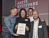 Espen Vik (f. v.), Gry Enger, Stian Pettersen og Morten Kristensen i BSH mottok prisen for «Årets hvitevare 2023/2024». Foto: Tore Skaar