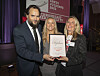 Stian Sønsteng (Elektronikkbransjen, f. v) ga prisen for «Årets julegave 2022» til Lina Kjällström og Christina Hovde-Olsen i Google-selskapet Fitbit. Foto: Tore Skaar
