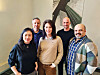 Meng Jin (f v.), Thor Christian Wiik Svendsen, Lise Evje, Ole Christian Holthe og Omar Mir utgjør administrasjonen i Erp Norge AS. Helle Kristin Ormestad var ikke til stede da bildet ble tatt. Foto: Jan Røsholm