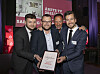 Kai Joar Kristensen (f. v.), Knut-Eirik Bruvold-Rørnes, Even Amdal og Tor Helge Kasin i Samsung mottok prisen for «Årets TV 2022/2023». Foto: Tore Skaar