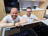Jens Petter Sørbøe (t. v.) og Henning Sandum i BSH med Bosch' platetopp med integrert ventilator og temperaturstyring i grader. Foto: Stian Sønsteng