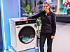 Malin Henriksson i Samsung viser deres Bespoke vaskemaskin med AI Ecobubble og 11 kilos kapasitet. Foto: Stian Sønsteng