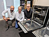 Martin Stenberg (f. v.) i Electrolux, Øistein Braathu og Martin Jensen i Elkjøp med platetoppene i safirglass. Foto: Stian Sønsteng