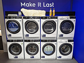 Noen av vaskemaskinene og tørketromlene fra Electrolux som er i Elkjøps nye sortiment. Foto: Stian Sønsteng