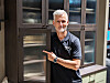 Rune Eriksen med den nye døren Fluted Glass. Foto: Stian Sønsteng