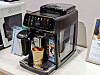 Fra Philips viser han LatteGo-maskinen med Silent Brew.