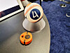 Smartballen til Playfinity inneholder en sensor. Sensoren kan også festet til ankelen for å hoppe på trampoline. Foto: Jan Røsholm