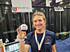 Administrerende direktør Pippa Boothman i Playfinity viser frem den smarte baseballen. Foto: Jan Røsholm.