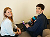 Steph Parker (t. v.) og Matt Goodley viser CleanTrace i Dyson-appen, som registrerer hvor man har støvsugd. Foto: Stian Sønsteng