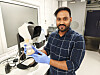 Rizwan Rahman med hepa-filteret i Dyson 360 Vis Nav. Foto: Stian Sønsteng