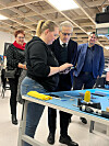 Janicke Otertjernet demonstrerer hvordan en knust mobilskjerm byttes, til Andreas Bjelland Eriksen og Elin Såheim Bjørkli (ordfører i Kongsvinger). Foto: Elkjøp