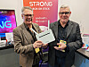 – Nå stenger kobbernettet i Sverige, og for mange er mobilt internett det eneste alternativet, sier Jimmie O’Connor (t. v.) og Kent Johansson i Strong. 4G+ LTE Router 1200 koster 2.000 kroner. Foto: Stian Sønsteng