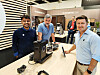 Morten Hoff (t. h.) og Ozman Page sammen med journalist Marco Dettweiler (i midten) fra Frankfurter Allgemeine, på IFA-messen. Foto: Stian Sønsteng