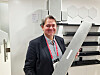Den nye lydplanken finnes i hvit og svart utførelse. Mac Berggren viser fem den hvite. Foto: Jan Røsholm