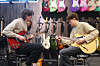 – Vi har vært her i flere år nå. Det er skikkelig gøy. Vi får drive med interessen vår, sier de imens de «jammer» litt i rommet som byr på et stort utvalg av elgitarer.