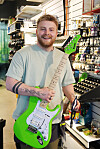 Sondre Knutsen endte opp med elgitar da han tok turen innom Musikktorget. Han kunne avsløre at han snart slipper sitt eget EP-album. Foto: Emma Bergli/Bypatrioten
