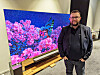Knut-Eirik Bruvold-Rørnes i Samsung med viser under PoweUp for første gang på en messe i Norge sine mikroled-TVer; 110-tommereren MS1A til 1,5 millioner kroner. Foto: Stian Sønsteng