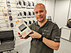 Fredrik Johansson, salgssjef for Norge og Sverige i Nedis, viser veggfester fra Dakota, Elektra og Nedis. Foto: Stian Sønsteng