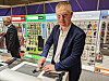 Brian Lindhardt i SBS Nordics demonstrerte på løpende bånd deres løsning for skjermbekyttelse. Foto: Stian Sønsteng