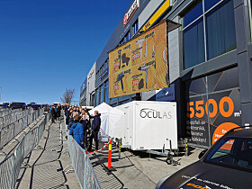 Leverandører og samarbeidspartnere måtte finne seg i å stå i kø, da de besøkte Power Rud onsdag 30. mars, dagen før åpningen. Foto: Stian Sønsteng
