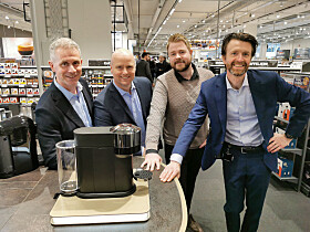 Martin Trangrud (f. v.), Hans Jacob Mikkelsen, Henrik Steen og Erling Lae i Nespresso. Foto: Stian Sønsteng