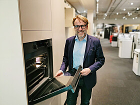 Bjørn Mangseth i Gorenje Group Nordic med Askos Craft Black Steel-ovn. Foto: Stian Sønsteng