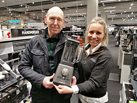 Howard Lie i F&H Scandinavia og kategorisjef Kristine Mensner i Power med en blender fra Magimix. Foto: Stian Sønsteng