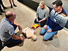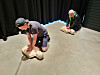 Ask Wintersborg Govertsen og Kjell Kirkelund trener på hjertekompresjon. Foto: Jan Røsholm