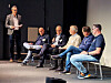 Jan Røsholm (Elektronikkbransjen, f. v.) ledet debatten med Trond Hynne (Electrolux), Per Endsjø (Beko), Pål Haugen (OmBrukt), Kjetil Petterson (Pema Miljøteknikk) og Svein Ove Hebnes (Hebnes Elektroservice). Foto: Stian Sønsteng