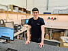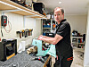 Leander Hesselberg ved pakkedisken, der produkter og deler kommer inn og sendes ut til hele Norge. Foto: Stian Sønsteng