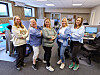 Kristine Bahr (f. v.), Nina Døhlen, Mona Pedersen, Julie von Krogh Robart og Desire Marka arbeider på regnskap og kundemottak. Foto: Stian Sønsteng