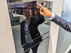 Døren er uten håndtak, og åpnes ved å trykke på en knapp.