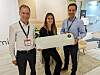 Andreas Krona (f. v.), Cecilie Uggen Stang-Lund og Per Robertson med en av de nye panel- og listeovnene med utskiftbar wifi-modul. Foto: Stian Sønsteng