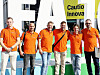 Retail Support stiller mannsterke på IFA, og er godt synlige i sine oransje skjorter. Peter Rohde (f. v.), Andre Adbro, Morten Berner, Tom Persson, Karsten Berner og Søren Rohde.