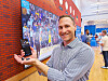 Knut-Eirik Bruvold-Rørnes i Samsung med Music Frame. Smarthøyttaleren kan brukes frittstående, i stereo eller i hjemmekinooppsett. Foto: Stian Sønsteng