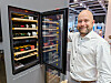 Armand Munther Gustavson i Frio Nordics med vinskapet Avintage AVI98Platinum. Skapet har en høyde på 98 centimeter, og passer i høyden ved siden av en ovn og en kompaktmikro. Foto: Stian Sønsteng