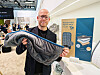 Richard Bjerkøe viser Ecovacs X8 med roterende mopp. Den leverer vann på den ene siden, og tar inn spillvannet på den andre. Kommer på markedet i første kvartal 2025. Foto: Jan Røsholm