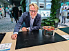 Dennis Morild i Thermex med platetoppen Sirocco II. Den har avtrekksvifte med utblåsningen og kullfilter, et plasmafilter selges som tilbehør. Pris: 39.000,-. Foto: Stian Sønsteng